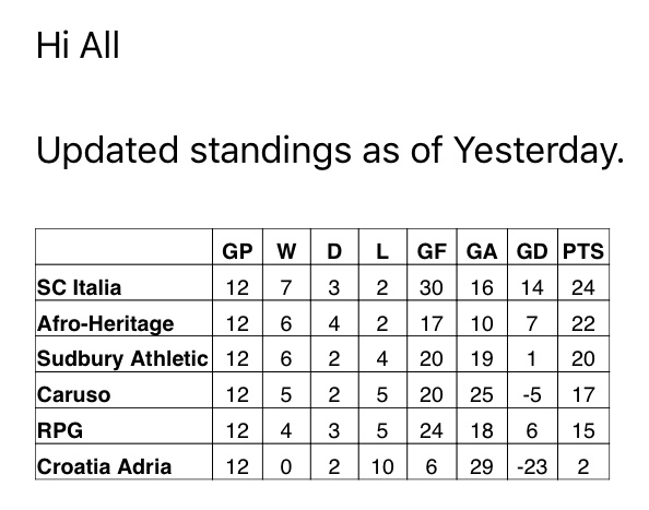 Standings as of August 28th (Men’s Over 40)