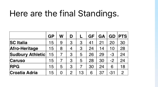 Final Standings 2018 – Men’s Over 40